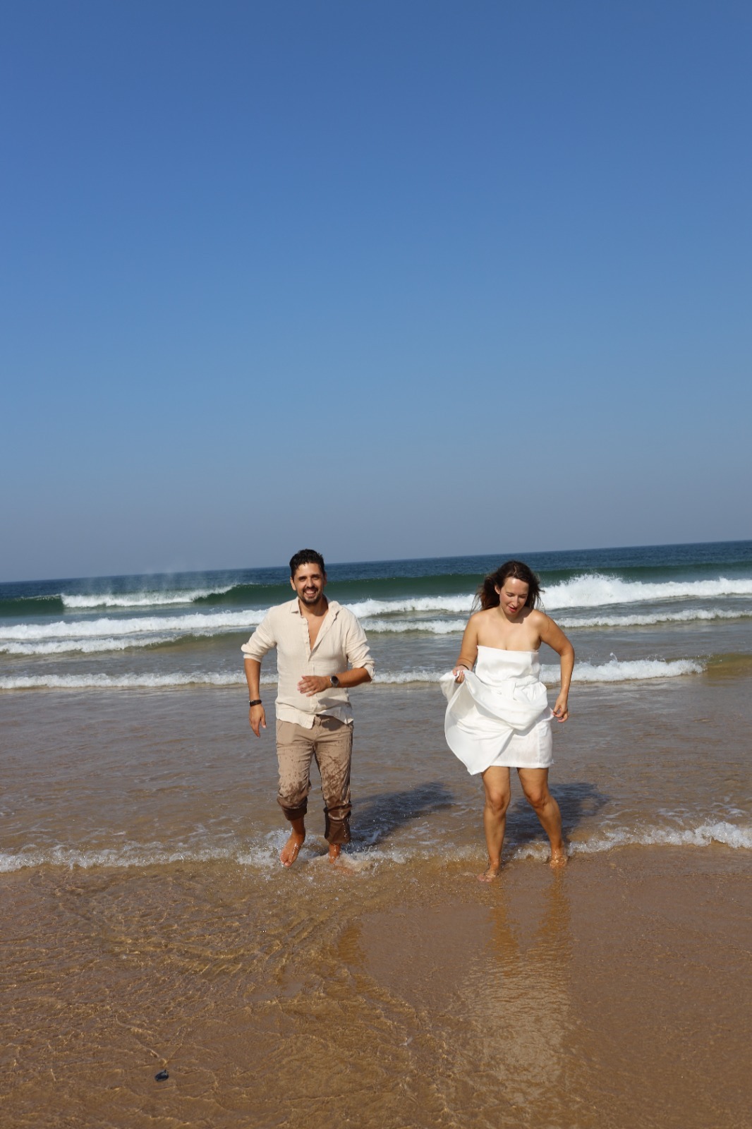 Entre muitas conversas, sorrisos e praias que guardamos na memória, um dia chegou o pedido: numa outra praia linda, o nosso “para sempre” começou ali.